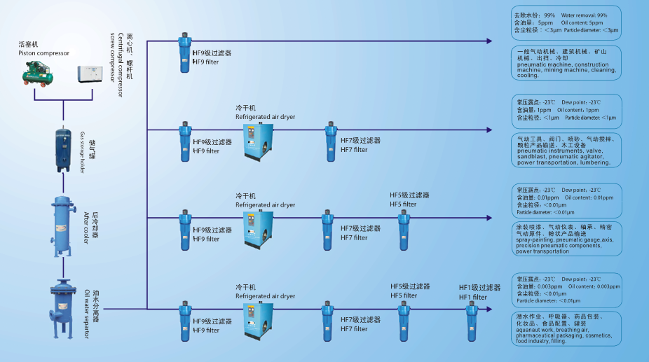 当要求压缩空气的“压力露点"低于零度时,吸干机是压缩空气处理的更好设备。